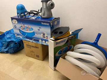 Vendo piscina rotonda gonfiabile Bestway fast set 2.44 m x 66 cm Provvista di: pompa filtro pulizia acqua Pedale per gonfiare Copritelo Tubi e paletta pulizia acqua