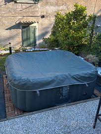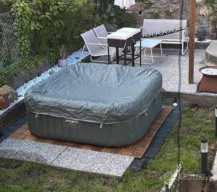 Utilizzata due volte a giugno/luglio 2025 Arebos Vasca idromassaggio gonfiabile | 185x185cm | Gonfiabile automatico | 6 persone | striscia luminosa LED | 130 getti massaggianti | 910 litri | incl. copertura | Bubble Spa & Wellness Massaggio