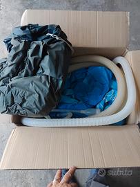 come da titolo vendo piscina gonfiabile ,compreso telo copripiscina, dispencer per il cloro e pompa,usata una stagione w rimessa via,vendo a 50 euro.