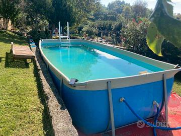 Vendo piscina di grandi dimensioni marca New Plast, misure 700 x 280 x 125, tenuta molto bene, completa di scaletta, skimmer e pompa nuova ( acquistata a Luglio a 350 euro). Piscina di qualità, di produzione italiana, fatta per durare a lungo. (Oggigiorno costerebbe 2500/3000 euro). Regalo anche Robot aspirafondo ( pagato un anno fa 250 euro). Attualmente montata con acqua presente: in caso di acquisto aiuto nello smontaggio. Vendo a prezzo trattabile.