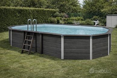 La struttura in composito garantisce resistenza nel tempo, assenza di manutenzione strutturale ed estetica moderna effetto legno, superiore alle classiche piscine fuori terra in acciaio.