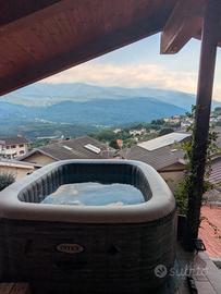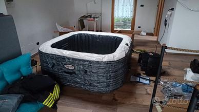 Piscina Intex idromassaggio gonfiabile riscaldata Quadrata PureSpa Deluxe, ideale per 4 posti, idromassaggio a 140 getti, PVC colore grigio dimensioni 175x175x71