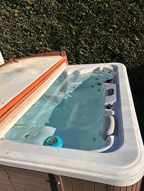 Piscina idromaggio perfettamente funzionante riscaldata con copertura rigida e doccia riscaldata