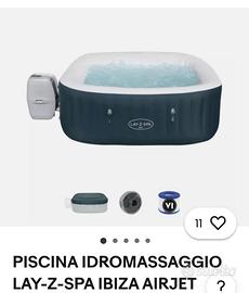 Piscina con idromassaggio nuova, usata una sola volta. Dotata di motorino che gonfia anche la piscina, la riempie di acqua e con telo per coprirla come da foto.