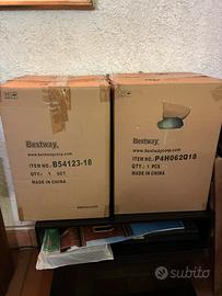 Vendesi piscina idromassaggio gonfiabile Lay-Z completa di kit 10 filtri per la pompa, aspiratore Intex e tappettini da mettere sul fondo prima del montaggio. Oggetto in ottime condizioni genereli completo di tutte le scatole di imballaggio