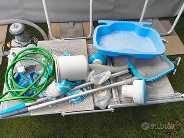 per filtro,prodotti chimici cloro shock,pastiglie cloro, telo di copertura ,telo termico,kit pulizia piscina e scopa aspiratore fondo elettrico.Galleggiante per prodotti chimici,cassa per musica,accessori porta bicchieri,lampade gonfiabili galleggianti.e materassino galleggiante.