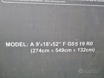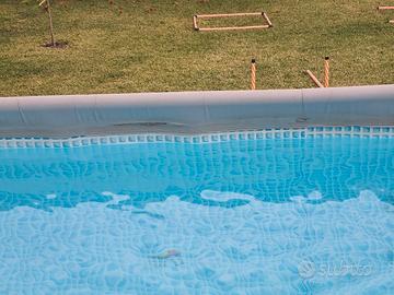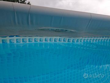 vendo solo struttura tubolare, liner (difettoso) e scaletta di piscina intex frame. misure 549x274x132. il liner presenta due strappi sul bordo interno ed è abbastanza vecchio, ma lavora ancora bene. bisogna solo metterla bene in piano al successivo montaggio. Non so quanto potrà ancora durare, ma fino a pochi giorni fa era montata e piena e teneva benissimo. La smonto dopo la vendita in modo da poterla visionare. Non ha buchi che causano perdite.