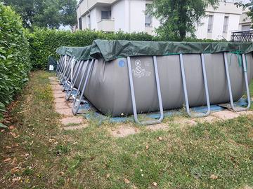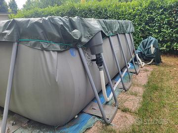 Vendo piscina Intex fuori terra 732x366x132 cm con pompa a sabbia maggiorata da 10000 l, skimmer esterno e telo copertura invernale. Inclusi tutti gli accessori originali ( tra cui telo di copertura leggero, scaletta, tubi, aspiratore ad immersione, retini, misuratore cloro e ph, ecc ). Inoltre posso fornire altri accessori a parte (come robot di pulizia, rullo avvolgitelo, pompa a filtro esterna, telo isolante, ecc). Vendo per inutilizzo, attualmente la piscina è smontata e conservata nelle scatole originali. Per altre informazioni contattami pure