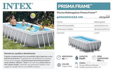 Piscina intex mt 4x2x1,22 acquistata agosto 2025, Telo nuovo mai usato. Ottime condizioni, Nuova