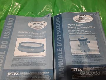 Piscina Intex Easy set rotonda, diametro 183 cm ,profondita 41 cm,colore blu.Tempo di montaggio 15 min.La piscina e dotata di pompa per l’acqua Krystal Clear.In piu 2 filtri nuovi in omaggio.Usata pochissimo .