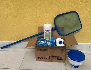 -materiale vario di consumo: filtri motore, antialga, cloro e strisce di verifica ph acqua.