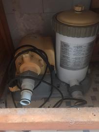 Piscina fuori terra intex misura 4x2x1 con pompa originale piu altra pompa piu potente intex con timer scaletta,cloro e telo copertura istruzioni e scatola,interno tipo mosaico nessuna riparazione