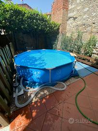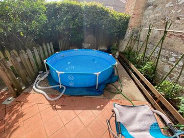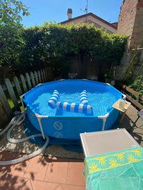 Piscina Intex Metal Frame 244x51CM USATA VENDO piscina INTEX Metal Frame con tubazioni e raccordi SENZA POMPA. Utilizzata due stagioni e riparata con patch e mastice nei piccoli fori. Riposta poi in scatola con talco per evitare umidità. Regalo incluso telo scuro copri piscina Intex traforato. Ottima per spazi ristretti o per bambini e ragazzi. Capacita acqua 1800 Litri al 90%. Montaggio rapido in 30 minuti!! Mi trovo a pietrasanta