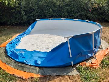 Il fondo ha qualche forellino e un inizio di scucitura, ma il vantaggio di queste piscine non gonfiabili con struttura portante a tubi metallici è che si possono "rattoppare" con adesivi o colla e pezzette anche da piene.