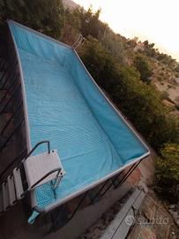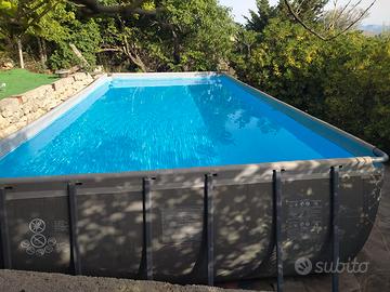 piscina intex rettangolare 732x366x132, 5 anni di vita in perfetto stato, fornita di: pompa per filtraggio a sabbia, tubi in plastica, raccordi, guarnizione, attrezzature per il montaggio e Intex pulitore Automatico per Piscine Fuori Terra 28001 3202734.
