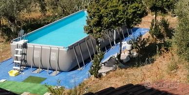 Piscina Intex rettangolare 732x366x132 usata dal 2018 al 2024. Abbiamo messo due toppe negli anni e attualmente senza nessuna perdita. Già smontata e inscatolata. Completa di telo di copertura, scaletta doppia rampa, filtro a sabbia a 6 vie compreso di pompa e tubi di connessione. Tutto in perfetto stato. Ritiro a mano solo per i costi di spedizione elevati. Ci si potrebbe organizzare per una spedizione privata.