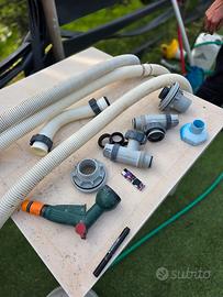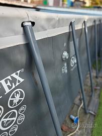 Vendo piscina con due anni di vita, struttura perfetta, solo il liner macchiato dal cloro ma poi per il resto perfetta. tutti piedi e accessori completi e senza ossido.