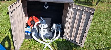 Piscina Intex usata per una sola stagione, vendo causa trasferimento. Completa di pompa a sabbia per fitro acqua e relativi tubi, scaletta a doppia rampa. Regalo: kit di pulizia, dispenser di cloro e skimmer (per pulizia della superficie). Peso 129kg, accuratamente pulita, disinfettata e riposta. Non presenti i 2 teli (copripiscina e telo base). A parte vendo generatore salino di cloro, strumento per produrre cloro con l'utilizzo del sale (100€), per ridurre l'uso delle pastiglie clorate. No perditempo, disponibile per essere visto a Castelnuovo ne'Monti, Reggio Emilia. NO SPEDIZIONE. Ritiro di persona.