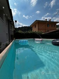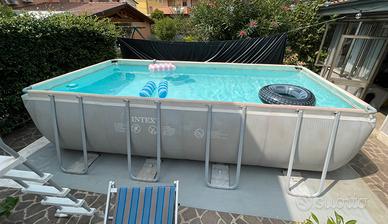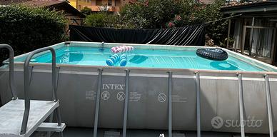 Vendo piscina Intex completa di pompa con filtro a sabbia cambiata da poco, scala e skimmer Misure: 549x274x132 Tenuta molto bene e riposta ogni anno