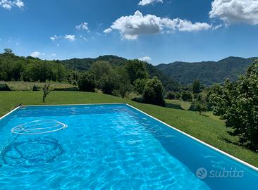 Piscina laghetto 8 metri per 4 metri altezzi 1,20 metri con filtro sabbia, telo per coprire, bocchetta per getto idromassaggio.