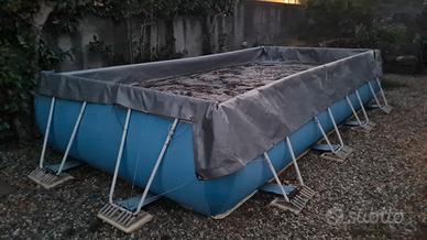 Vendesi piscina laghetto 3 mt. x 5 mt x 1 mt h. con filtro a calza. Sono compresi: la scaletta, il motore, il telo di copertura, l'aspiratore per il fondo, i pannelli in poliuretano comodi come base e il residuo dei prodotti per il trattamento dell'acqua. La piscina ha piccole riparazioni e qualche piede rinforzato, ed è perfettamente funzionante.