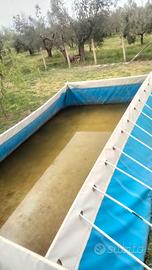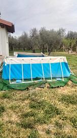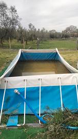 Vendo per non utilizzo Piscina marca Laghetto misure circa 5 x 3 x 1 alta,il telo, la struttura il motore e lo skimmer sono buoni, da rivedere i tubi
