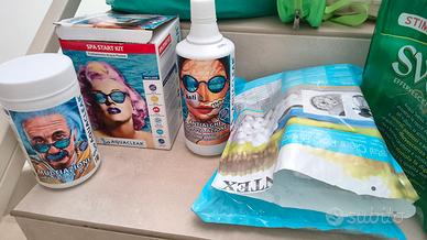 vendo piscina 4.88x2.44x1.22 di altezza. Usata solo 2 mesi. Dotata di pompa a sabbia, scaletta e telo per coprirla. In più un pacco di sfere filtranti, kit che comprende cloro, pH Minus, pH plus e anti schiuma.