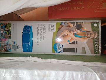 Vendo piscina fuori terra circolare della Intex misure 3 metri x 76 cm d'altezza, con pompa e tubi, presenza di un piccolo buco sul telo, ma nel pacco metto anche il kit di riparazione facilmente riparabile, contenitore per cloro galleggiante, kit per rilevare la durezza dell' acqua.