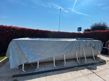 Piscina Intex Fuori Terra Rettangolare, Scaletta e Copertura, Acciaio e PVC, Grigio, misure 488x244. Presente Skimmer esterno, tutti gli accessori ( tubi e raccordi). Nel prezzo compreso anche robottino marca Dolphin SX10. Pompa da rivisionare.