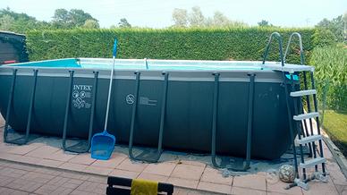piscina ultra frame rettangolare intex codice 26356 misure 5.49x2.74xh1.32; scaletta intex ultra metal frame ;krystal clear pool basic robot per pulizia fondo piscina;retino spazzola per pulizia piscina; flow clear 58233 ;2 dosatori cloro galleggianti per pastiglie ;telo per copertura invernale; pompa a sabbia krystal clear sx3200 prezzo trattabile