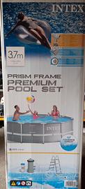Vendo per inutilizzo piscina Intex, in ottimo stato usata 6 mesi (2 stagioni). Completa di scala e pompa. Robusta, altezza acqua 84 cm. Diametro 366 cm.