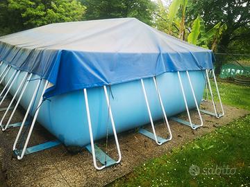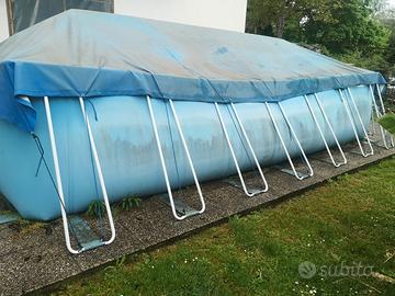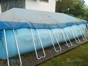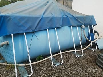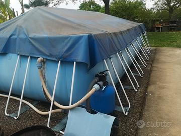 Piscina fuori terra Oasi Atlantic 1, specchio d'acqua cm 355x640, ingombro cm 460x750, con pompa esterna e filtro a sabbia. Visibile ancora montato.