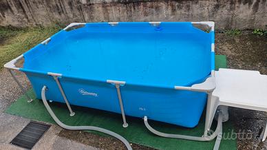 1.52x2.52 perfetta ingombro identico alla misura della piscina, con pompa maggiorata a cartucce e pompa più piccola sempre originale di riserva. senza alcuna perdita e mai riparata. smontata ogni stagione e pulita ed asciugata a fondo. compreso di telo nuovo di copertura. vendo per passaggio a piscina più grande. altezza acqua 50/60cm circa. ottima per bambini piccoli. 2300 litri.