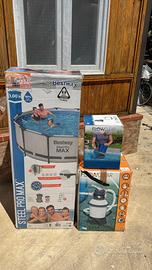 Vendo piscina fuori terra come nuova utilizzata solamente una volta misure 3.66x100 completa di filtro a sabbia piu filtro a cartuccia e skimmer peezzo leggermente trattabile