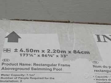 Piscina rettangolare. Misure: 4.50mx2.20mx84 cm Nuova , mai aperta a causa di trasloco. Prezzo trattabile