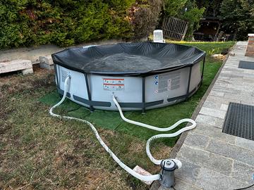 Vendo piscina per giardino usata poco con pompa per ricircolo acqua e telo di copertura perfetta senza fori attialmente ancora montata e piena d acqua vendo per poco utilizzo e il bimbo e cresciuto… posso spedite oppure consegnare a mano