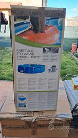 Vendo piscina rotonda di 3metri usata solo 2 estati, completa di tutto, con motore, porta cloro, Un pacco di cloro e aggiustatore di ph, telo copertura, retino e kit per pulire il fondo. La piscina è stata riparata da 2 fori. Facile montaggio e subito utilizzabile.