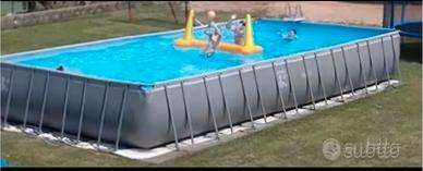 Vendo piscina intex 975x488x132 con qualche rattoppo , con filtro a sabbia / telo copertura (non originale) rete da pallavolo con pallone ( originale non quello gonfiabile in foto ) spazzole per pulizia piscina e retino.