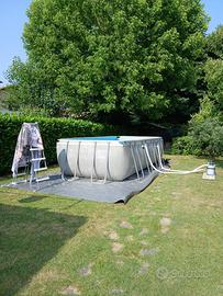Misure sono 549x274x132 cm con scala e motore intex disponibile con tutta la attrezzatura. È presente piccolissimo foro rimediabile con un apposito adesivo Per maggiori informazioni contattatemi Prezzo trattabile
