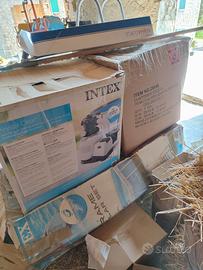 Piscina 400x200 usata intex 28316 con scaletta telo di copertura e pompa a sabbia intex 26646 . Includo anche prodotti di rimanenza come cloro in pastiglie , regolatore di pH e anti alghe . più mezzo sacco di sabbia per la pompa...tutto imballato in scatole ma tutto visibile se interessati. La piscina presenta segni di usura come scolorimento e un piccolo foro chiuso con una toppa ,mentre la pompa è come nuova.libretti di istruzione inclusi