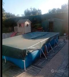 Piscina Bestway fuori terra. Misure 4,11 x 2 10 x 0,90 altezza , usata 3 anni ma tenuta perfettamente, telo originale per coprirla della stessa misura , pompa filtro più grande e potente comprata 1 anno fa perché quella in dotazione non era granché , più asta con retino per insetti veri e dosatore di cloro nuovo come in foto
