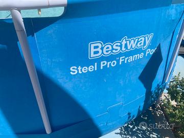 Bestway 56677-2 Piscina Fuori Terra Steel Pro Rotonda da 305x75 cm completa di scaletta e telo copri piscina usata per sole due stagioni, presenta alcune riparazioni che non compromettono le sue funzionalità.