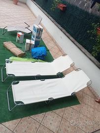 nr. 1 sedia a sdraio con telo color safari, parzialmente scucito da un lato;