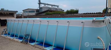 vendo piscina fuori terra San Marco, modello Ischia in buone condizioni. Misure ingombro: 8,28 m x 4,66 m. Misure vasca: 7,22 m x 3,56 m; la piscina viene venduta smontata, completa di accessori: scaletta per entrata/uscita, robot per pulizia, motore con filtro (e ricambi filtro), tubi di collegamento e istruzioni di montaggio. La piscina nel tempo è stata riparata con materiale adeguato ed è perfettamente funzionante. Prezzo trattabile