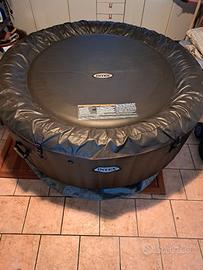 Piscina gonfiabile spa con idromassaggio per 4 persone, Intex. Diametro 200, altezza 70, completa di tutti gli accessori, con supporto motore per produzione idro-massaggio e acqua calda. Come nuova, tenuta sempre in luogo chiuso.