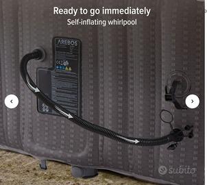 CAUSA TRASLOCO, VENDO PISCINA SPA IDROMASSAGGIO RETTANGOLARE MARCA AREBOS (MISURA 185X185) CON POMPA INTEGRATA. ACQUISTATA MAGGIO 2025, COMPLETA DI ACCESSORI: TELO COPERTURA, TELO PAVIMENTO, KIT VERIFICA PH ACQUA, RETE PULIZIA, PASTICCHE CLORO A LENTO RILASCIO E TRATTAMENTO SHOCK, FILTRI NUOVI, DUE GALLEGGIANTI PER CLORO, DUE POGGIATESTA, PORTABICCHIERI.
