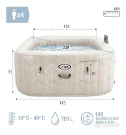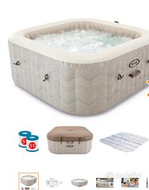 Vendo nuova piscina INTEX quadrata fuori terra da giardino o terrazzo riscaldata con applicazione e filtro al sale e telo copertura tutto compreso Nuova usata due volta messa nella sua scatola e kit originale