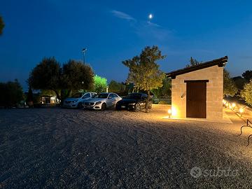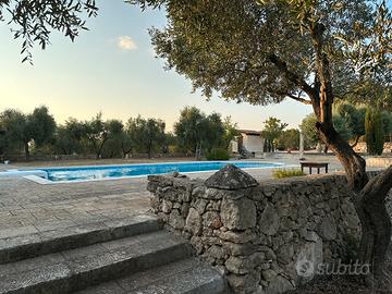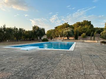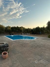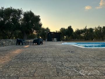 Fornita di barbecue,tavoli, sdraio, sedie, tavolini, ombrelloni con braccio allungabile, spogliatoio in legno con frigo, un bagno a completo servizio della piscina, doccia, parcheggio interno alla villa e illuminazione serale.