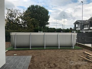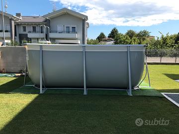 Piscina fuori terra New Plast California 650x390x140 con pompa, filtro, skimmer e scaletta in acciaio. Unico priprietario, usata pochissimo, ottime condizioni con certificato di conformita’. Piscina 100% italiana. Liner senza alcun difetto.