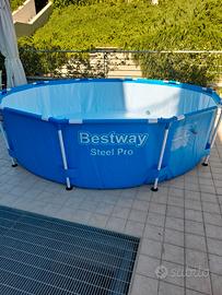 piscina da giardino larga 3 MT alta 1.40MT usata una sola volta incluso nel prezzo pompa per il ricambio automatico dell acqua con purificatore e porta cloro .